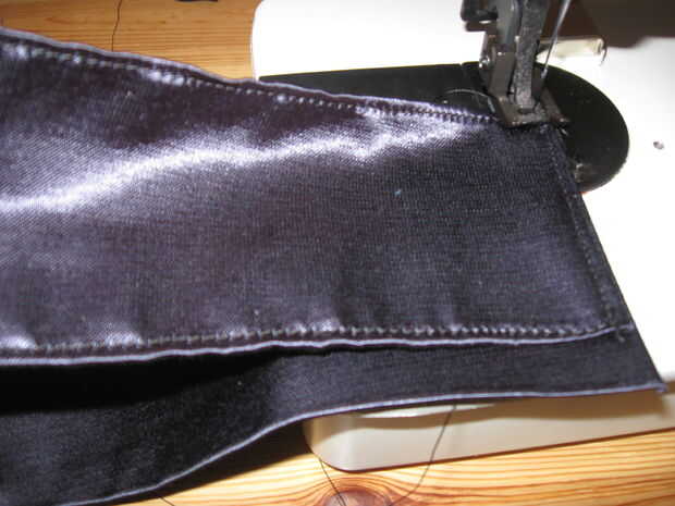 Coser un borde largo del rectángulo más grande para hacer un plegado parece.
