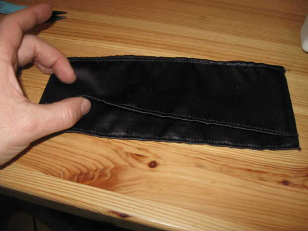 Coser a lo largo de tres bordes de los rectángulos dejando abierta la sección de solape superior.