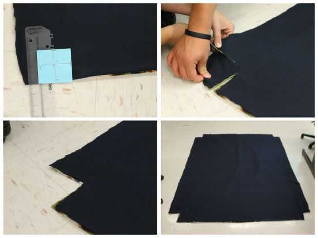 Mida y corte un cuadrado de 4 pulgadas en cada esquina de la tela.