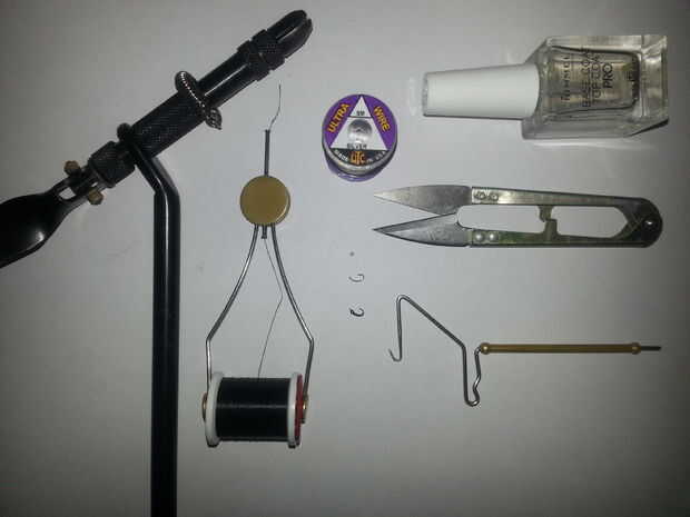 *Note* yo se ser atar una mosquita negra con un alambre de níquel negro 1,5 mm cabeza de perla y plata en un gancho curvo de tamaño 22.