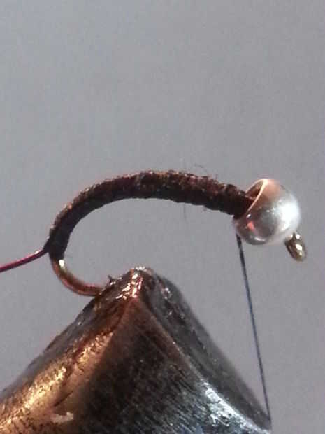 2. crear un cuerpo de hilo envolviendo sólo unas pocas capas de hilo de rosca en el cuerpo de la mosca.