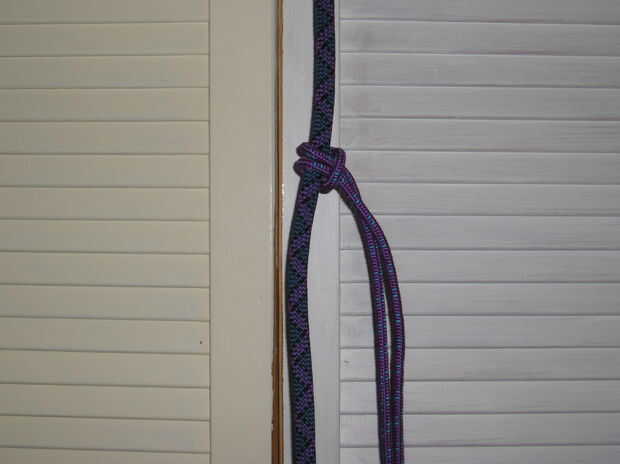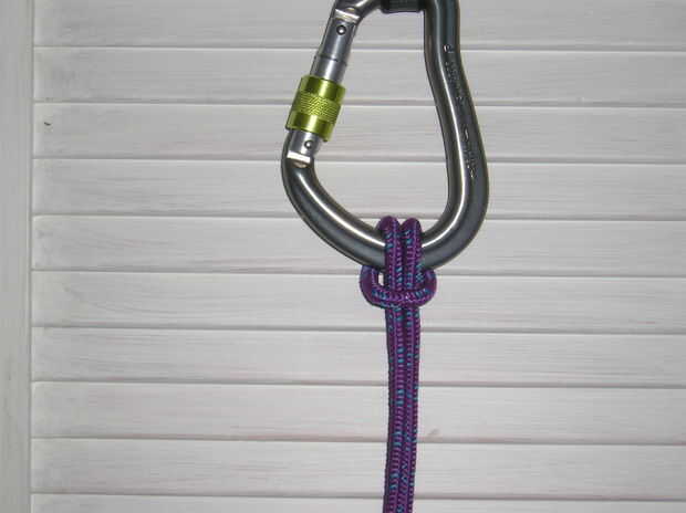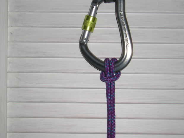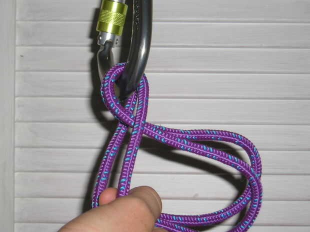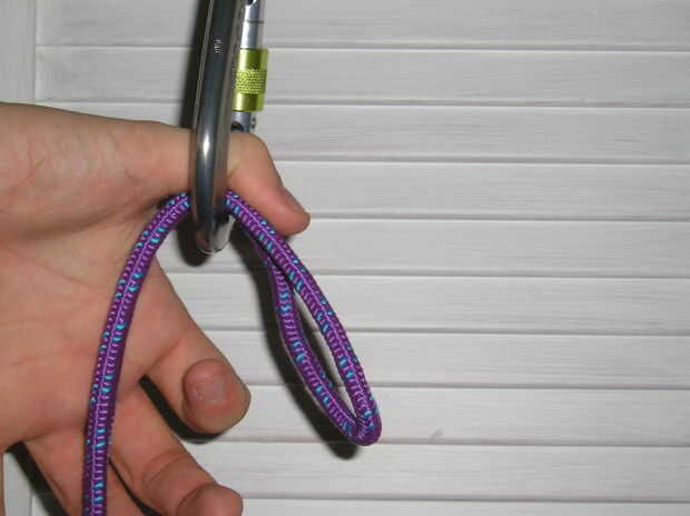 Además de hacerlo con cuerda de escalada, tengo (según la petición, siempre como obtener retroalimentación) volver a tiro algunas fotos, con un mosquetón y acceso a cable. Mientras que son exactamente lo mismo, no tiene ningún sentido, qué tan nunca utilizar este nudo con un mosquetón de seguridad. Da un mejor contraste de colores que creo que es el tema principal.