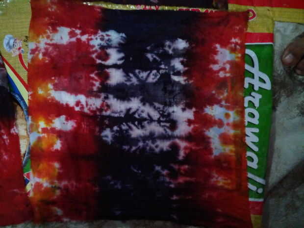 doblar la tela en forma de ziz zaz y luego atarla. colorante a partir de un extremo y color parte pequeña y luego la otra y así sucesivamente.