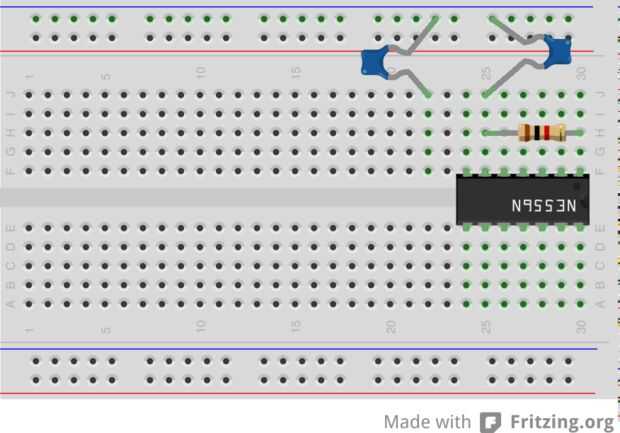 c) condensador 2: colocar el extremo de la columna 22, J. fila Coloque el otro extremo del riel de voltaje azul arriba.