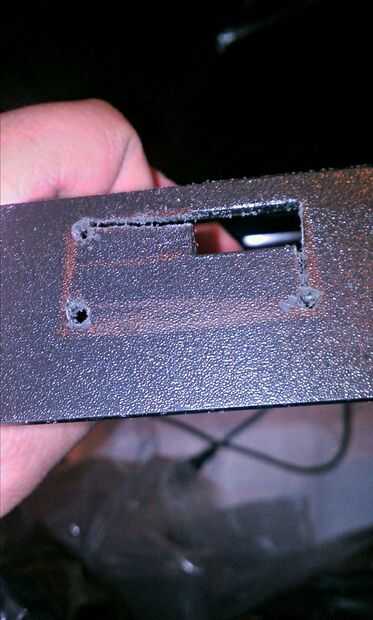 Desde el selector de canal no sirve para nada, re-purposed ese espacio para cuatro puertos USB. Utilicé la misma técnica como lo hice en la apertura del cable HDMI, he usado la Sierra de calar para ampliar la abertura y, a continuación, el papel de lija para suavizar los bordes.