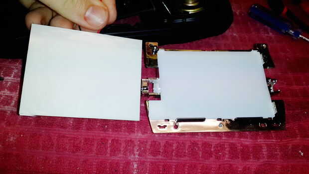 El difusor de luz (pieza de plástico blanco) necesita ser reemplazada con el contraluz del LED. Afortunadamente son casi del mismo tamaño.