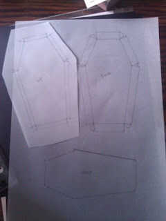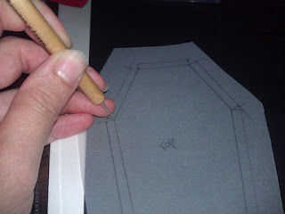 Como quería ataúdes negros, no pude imprimir la plantilla de la tarjeta de modo que trazó en su lugar. He utilizado un punzón para pinchar pin cada punto en la tarjeta y luego se unió los puntos para volver a dibujar cada pieza.