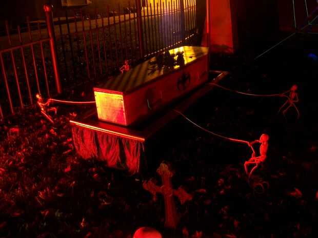 Deje caer el ataúd/féretro bajando carcasa sobre el ataúd/féretro. Bajar las cuerdas en el suelo o uso cementerio criaturas sosteniendo los extremos de la cuerda y se realizan.
