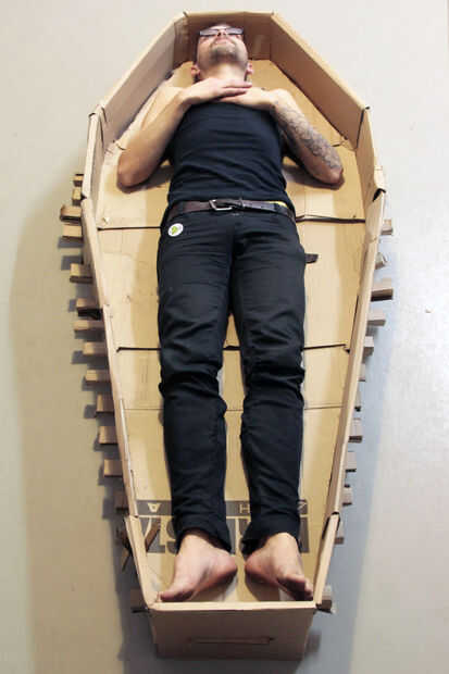 Tenga en cuenta que la capacidad estructural del ataúd no es para cuerpos vivos. Porque los cadáveres rígidos y sin movilidad, es necesario que otros coloca en el ataúd y así que su peso total se distribuye uniformemente a través de las vigas. Colocar una porción grande de peso en cualquier viga hará que se combe excesivamente y dañar la integridad del ataúd.