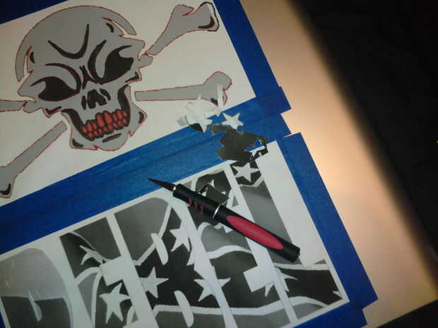 Pintura de paso 8) sobre toda cosa Asegúrese de obtener una buena capa uniforme dejar seco y quite la cinta que cubre el diseño/s