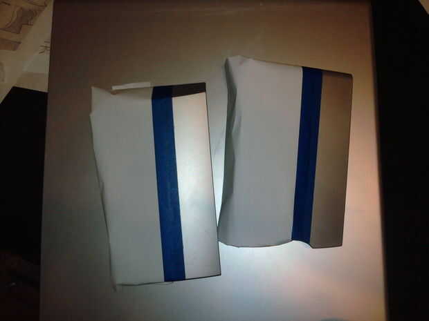Comienzo del paso 3) con 1 color y máscara de todo lo demás que wont ser ese color con cinta y papel