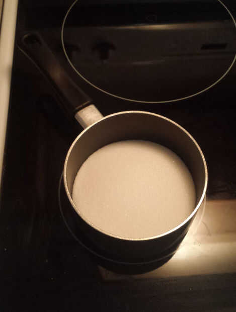Poner el azúcar en una olla pequeña y añadir el agua, gire el calor al medio y seguir revolviendo.