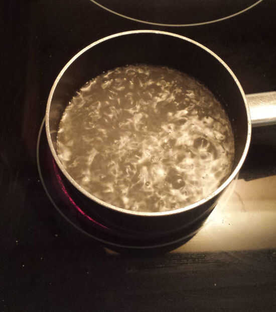 Cuando el agua comienza a hervir exprimir medio limón en el agua y añadir el agua de rosas y el agua de Azahar.