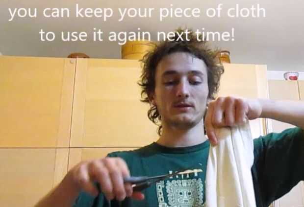 a. obtener una toalla de papel, o (mejor aun) un pedazo de tela. Usted puede cortar un trozo de una camiseta vieja por ejemplo.