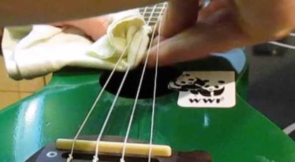 d. limpiar la silla de montar (lugar en la parte inferior del ukelele donde se unen las cuerdas)