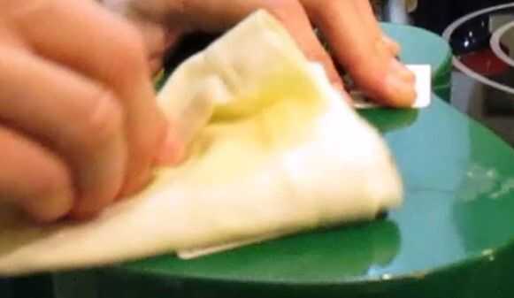 Nota: puede guardar el trocito de tela aceitosa para la próxima vez (por ejemplo, en un pequeño vaso en la nevera)