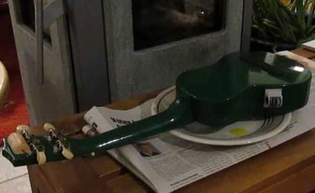 f. poner el ukelele boca abajo en un plato durante la noche (como ves en la foto), por lo que cualquier exceso de aceite viene hacia fuera. también puede borrar lo que pueda de exceso de aceite con su pedazo de tela. tu ukulele tomará un tiempo para secar completamente (un día más o menos), pero se puede utilizar ya)