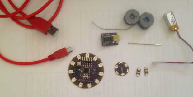 Para la broca Lilypad Arduino, usé varios pedacitos de la Junta de desarrollo de Lilypad de Protosnap. Necesitarás las siguientes partes (click en cada parte para verlas individualmente):