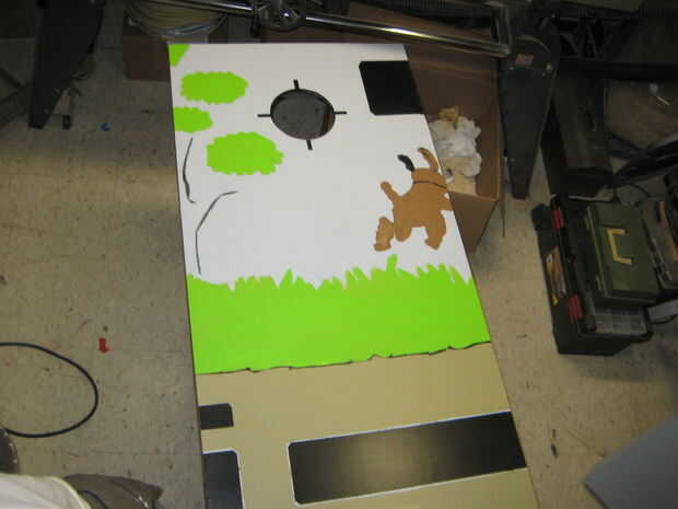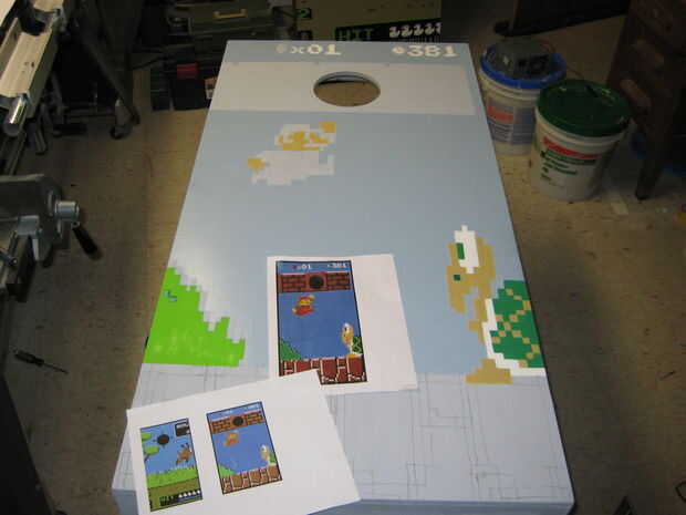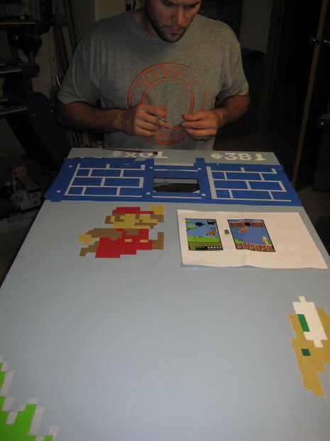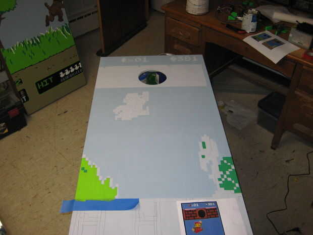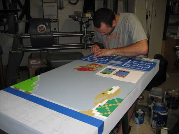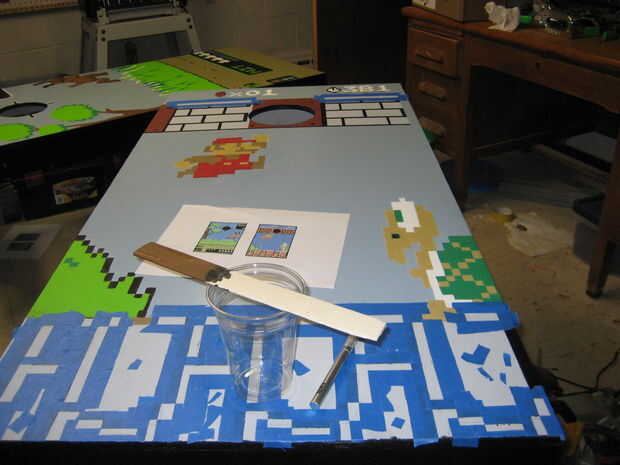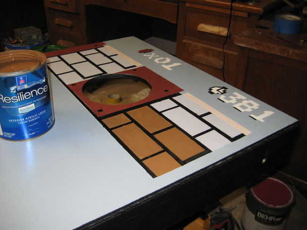 La superficie fue pintada con una imprimación primero, el diseño dibujado con un /projector de lápiz y luego pinta las especificaciones quería. Una tonelada de cinta, el tiempo y la pintura, el diseño fue acabada.