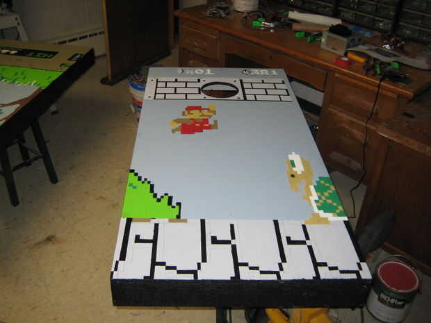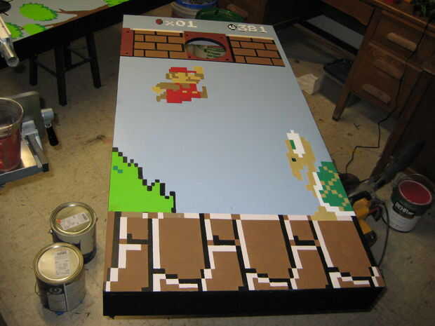 Los lados y la posterior necesidad de cubierto para proteger la madera, no sólo la superficie de juego. Empecé con el primero. y cubierto en mi capa de base. Después de conseguir el espesor y la cobertura que necesitaba, me trasladé a la superficie de juego.