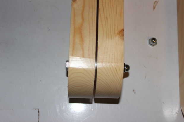 Poniendo 2 arandelas entre las tablas, asegúrese también que no tengo problemas con la pintura tratando de pegarse a sí mismo.
