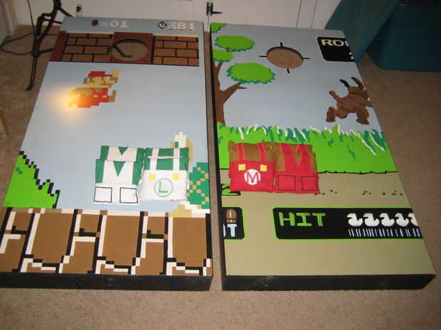 Si quieres ver algunas bolsas personalizado maíz agujero, aquí está un enlace a un conjunto para mis placas y cómo hacerlas. Bolsos de Mario y Luigi maíz agujero