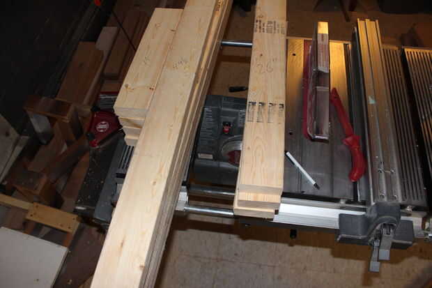 El 2x4s lado corté a 50 pulgadas, el frente y atrás, las piernas de 15 pulgadas y 26 pulgadas.