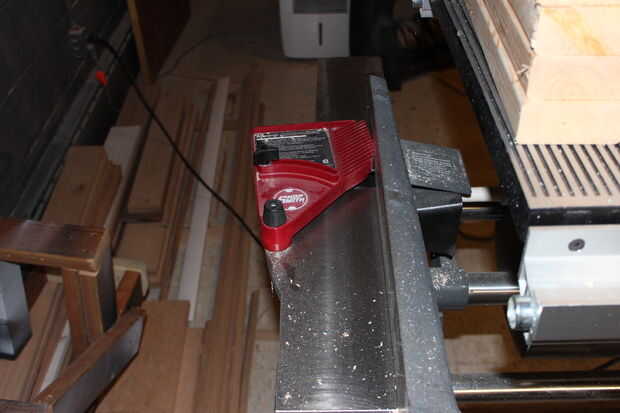 Desde aquí tienes un tableros bastante plana, o debería. Pero las caras de los tableros no son necesariamente cuadradas a los lados. Esto es donde una empalmadora. Con su lado planeado contra la valla de la ensambladora, tomar un paso o dos de un lado al cuadrado a la cara.