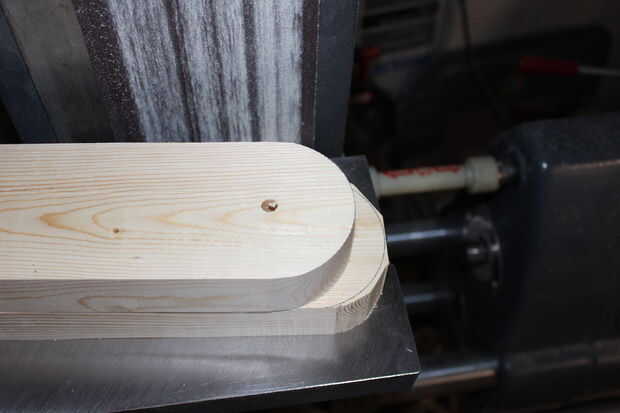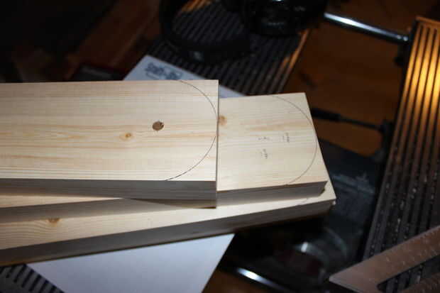 Corte la forma de medio círculo, un poco antes de la línea con una sierra de banda y terminar de dar forma a la línea con una lijadora de banda montada.