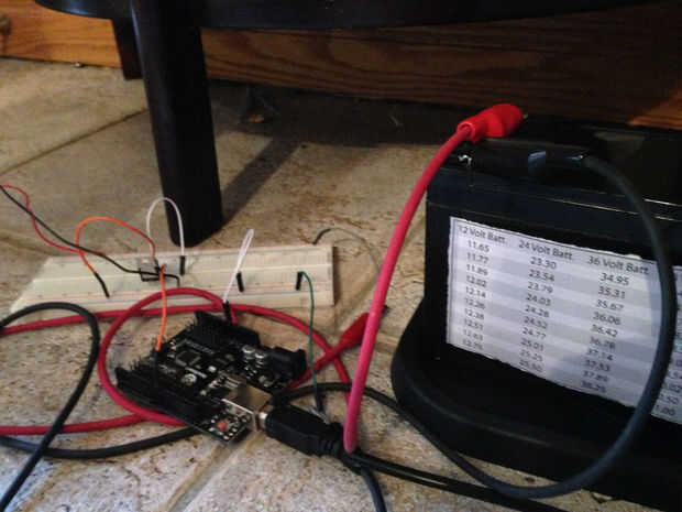Para una fuente de 12V, he utilizado mi batería de plomo. Asegúrese de que los cables no hacen contacto en el protoboard. De lo contrario habrá un montón de chispas y plástico derretido.
