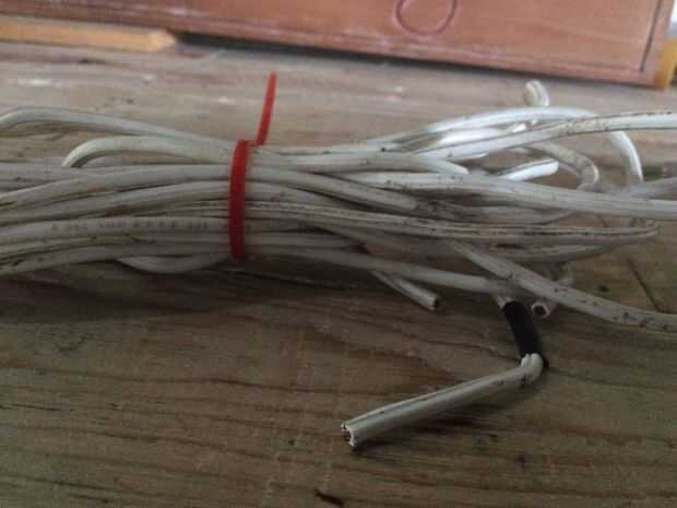 Para este paso cortaremos dos pedazos de alambre de extensión, con ayuda del nivel se los atornillaremos al zócalo.