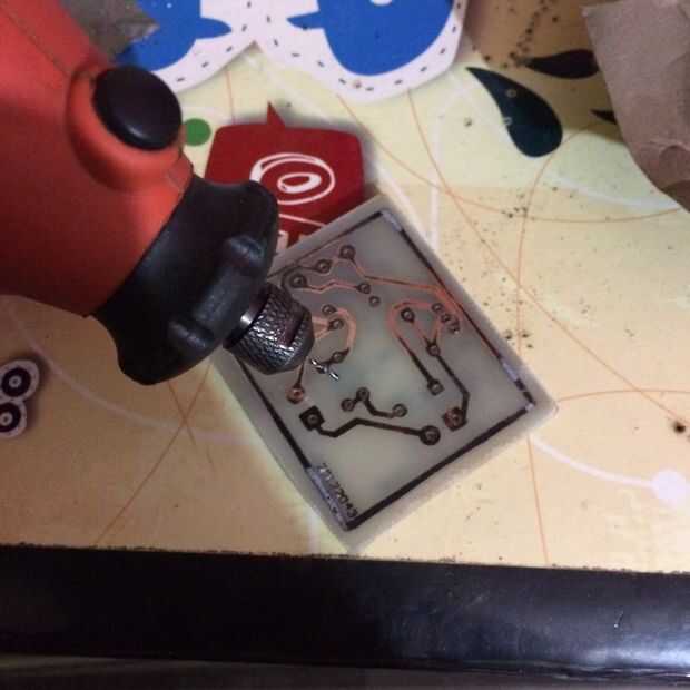 Con ayuda del taladro perforamos la baquelita en todas las terminales.