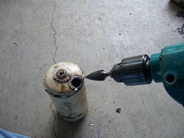 .once usted sabe donde el tubo va traza alrededor de él y taladro agujeros en el círculo/óvalo/qué usted son un montón de maneras de hacer este .i perforado agujeros cerca de uno otro alrededor de la forma para que la tubería estaba a pasar entonces con la persuasión de mi martillo noqueó el pedazo de centro y limpiar los bordes con un poco de estímulo de la pongo en mi taladro