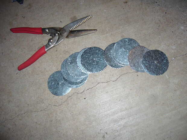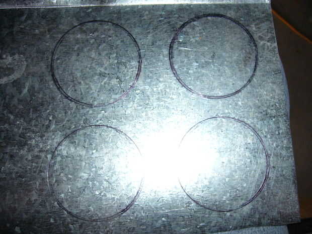 Ahora que eso se hace .you necesita obtener el metal que vas a hacer los deflectores de .para esto usado galvanizado .it intermitente no tiene que ser ya que lo único se sostiene detrás es escape .you necesario para obtener la medida del interior diámetro de la división de .then del tanque que por dos (perdón por la simplificación) hacer una brújula y empezar a dibujar círculos .remember a hace que se marque el centro de cada uno del círculo porque necesita hacer un agujero allí