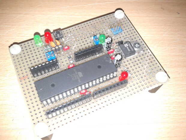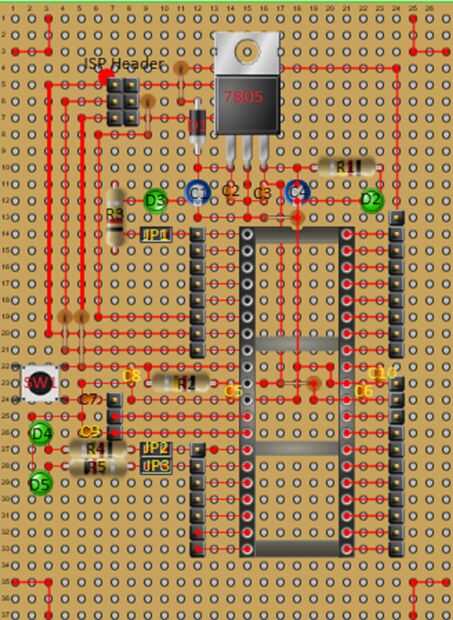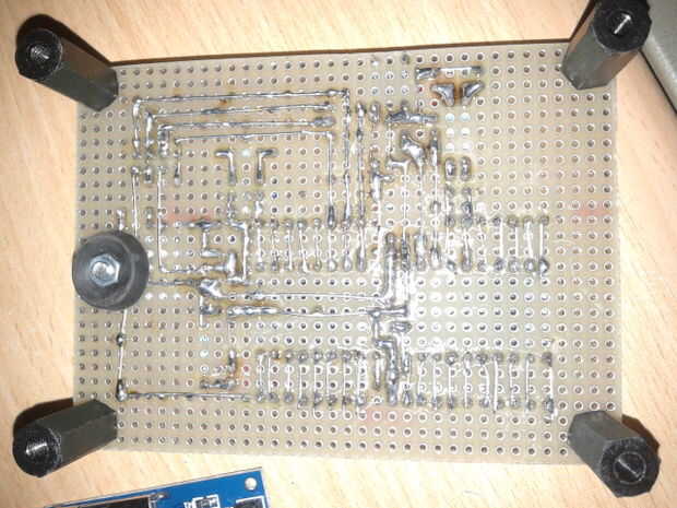 -conseguir la placa de prototipado y soldar todos los componentes en el lugar correcto (resistencias verticales son puentes: A doble