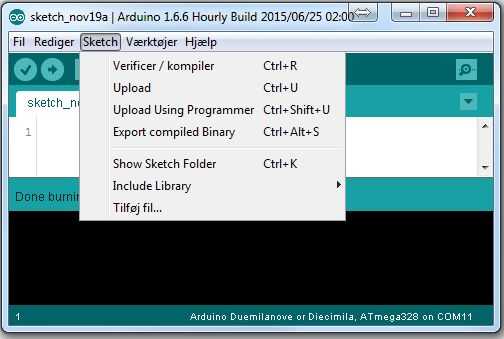 Así que ahora, carga su sketch en el IDE de ARDUINO, mantenga presionada la tecla Mayús y pulse el botón subir, y listo.