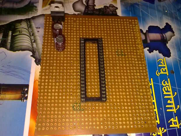 Primer paso es montar los componentes de la alimentación, aquí he utilizado 7805.