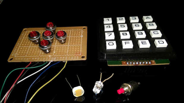 Figura 1: Interruptores de ejemplo que pueden utilizar resistentes a las tracción MCU, delantero: foto resistor, transistor de la foto, botón; Parte posterior: ejemplo clave los cojines.