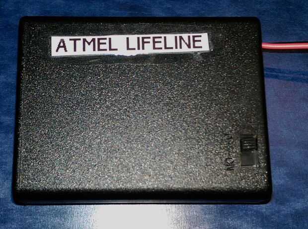 Como se mencionó, la solución al problema de fusibles reloj incorrecto consiste en simplemente establecer un circuito con la adecuada frecuencia y amplitud. La solución aquí consiste en utilizar el Atmel ATTINY2313A MCU registrado por el oscilador interno de 8MHz que, mediante programación, un pin del puerto a unos 1,5 MHz que, a su vez, acciona el perno muerto-MCU para el cristal. La línea de vida (Figura 1) está construido en un portapilas con un interruptor que fue construido originalmente para contener cuatro células AA pero ahora tiene tres células y las ATTiny2313A. Blanco MCU opera a un voltaje menor pueden ser acomodadas quitando una célula y ponga en cortocircuito los contactos correspondientes en la caja o agregando una resistencia a la salida de línea de vida. Uno puede ampliar fácilmente la función de la línea de vida con pruebas básicas de otras funciones MCU como el puerto serie y ADC agregando algunos programación del MCU y traer un par más alambres fuera del recinto.