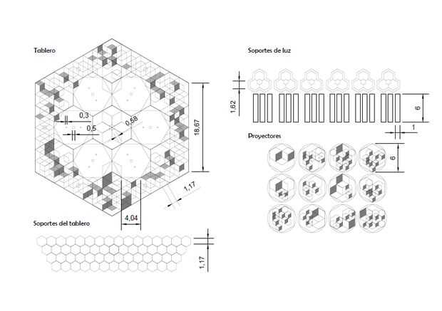 geometría del elemento principal, el Led, para configurar todo el resto de las piezas: tablero, soportes, proyectores y.
