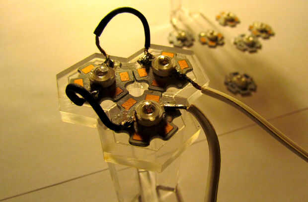 Paso 4: PASO 3: Soldadura de los led en serie y colocación sobre los soportes de acrílico.