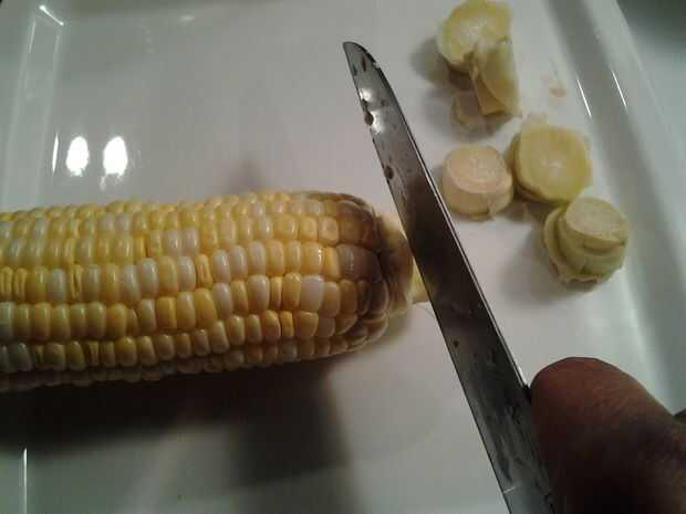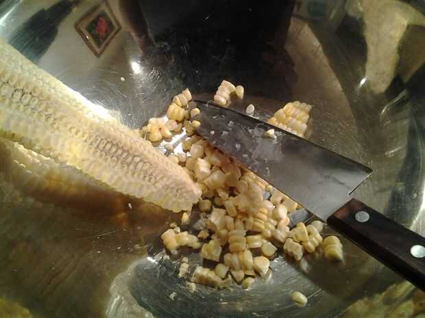 -Raspe cuidadosamente, los granos de maíz en un recipiente