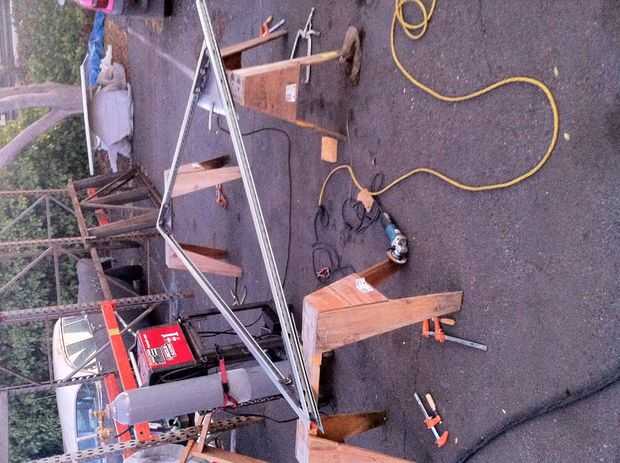 Esto se podría haber hecho mucho más fácil, pero quería algo que podrían tomarse separados y almacenados, volver a montar fácilmente durante muchos años. Utiliza un triángulo rectángulo y tomó un esfuerzo especial para soldar las tuercas en el interior placa de modo que puede ser desmontado. Encontré las tuercas de soldadas en fastenal.