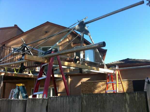 Oh - y era un oso para levantar esta cosa de la tierra en la cima de las paredes.