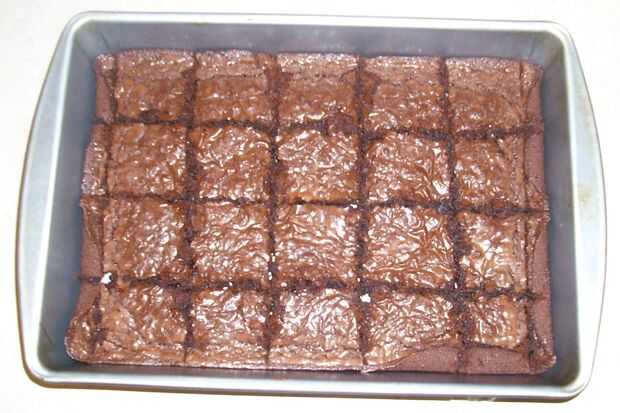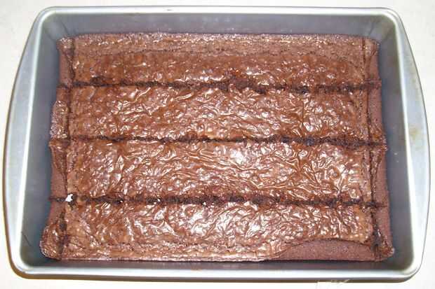 2. Deje enfriar brownies durante unos 10 minutos y luego cortar en cuadrados.