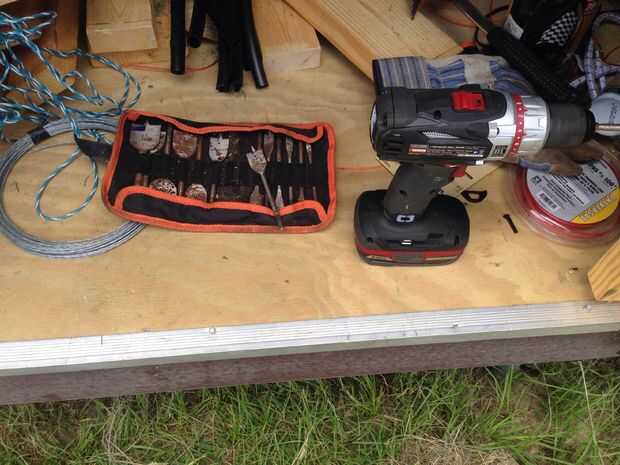 Utilicé una herramienta para perforar los agujeros y algunos viejos tornillos para atornillar el tablero compuesto en la parte inferior del atractor