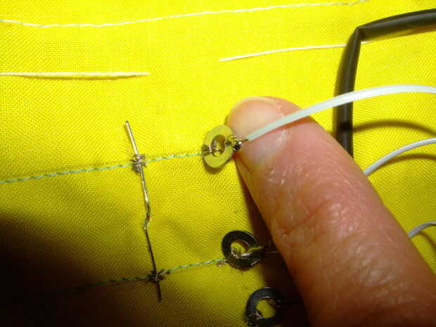 Coloque seis arandelas con hilo conductor.