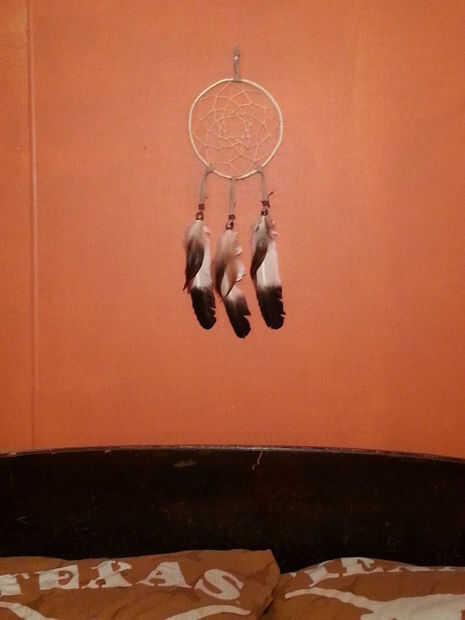El aire de la noche está llena de sueños, buenos y malos. Cuando se cuelga un atrapasueños cerca de la cama dónde usted duerme, atrapa los sueños a medida que pasan. Los buenos sueños, saber cómo pasar el atrapasueños, hacen su camino a través del agujero del centro y abajo las plumas para que caiga suavemente en la mente dormida de la persona a continuación. Los malos sueños, sin saber cómo pasar a través de él, se enreden en la red y son destruidos por las primeras luces del nuevo día.