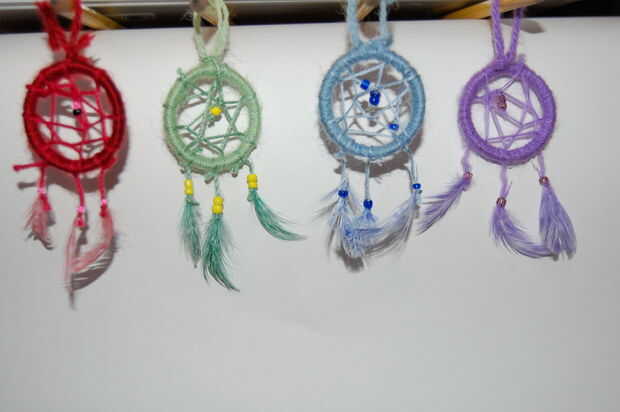 ideal para regalos o decoración de dormitorio de la Universidad, estas hermosa, única y fácil de hacer atrapasueños puede ser codificados por color para que coincida con sus acentos. No cuesta dinero, si tienes las fuentes alrededor de la casa, que usted puede.