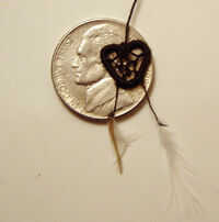 El problema que he encontrado es que la cadena está demasiado dura cuando es solamente 1/2" de largo, por lo que las plumas sobresalen un poco torpe, pero no he encontrado una manera alrededor de eso. (Realmente, incluso con hilo de coser normal, 1/2" es bastante rígido con una pluma).